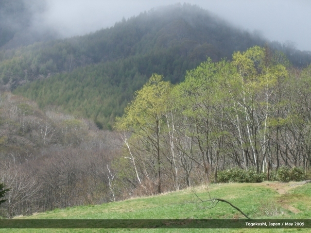 White birch trees with fresh green in Togakushi, Japan. 3296x2472 jpeg image. Visit http://japaneselandscape.appspot.com/ for other photos.